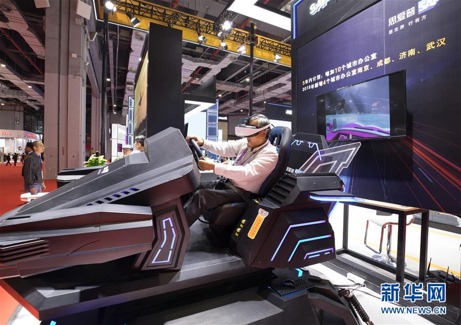 11月5日,一名參觀者在第二屆進(jìn)博會(huì)科技生活展區(qū)體驗(yàn)虛擬現(xiàn)實(shí)賽車。新華社記者金立旺攝