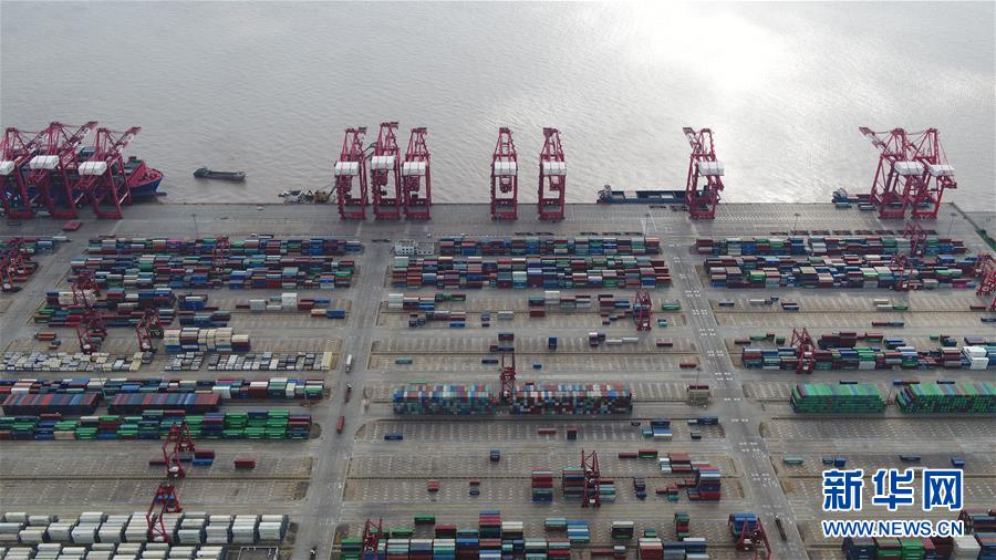 上海洋山深水港(10月16日無人機拍攝)。新華社記者丁汀攝