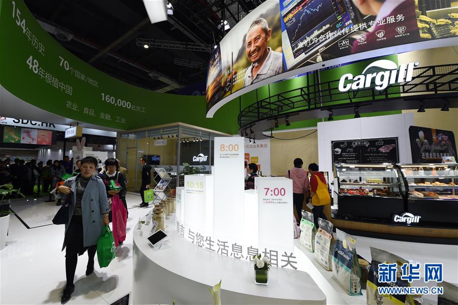 11月10日,在第二屆進博會食品及農(nóng)產(chǎn)品展區(qū),參觀者在美國嘉吉公司展臺參觀。新華社記者范培珅攝