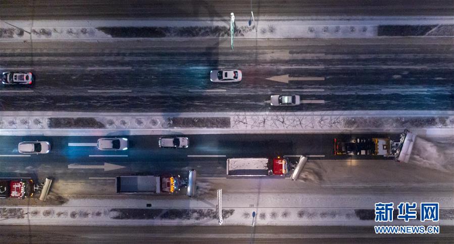 11月17日,在長春市南關區(qū)衛(wèi)星路快速路上,清雪車輛列隊清理路面積雪(無人機拍攝)。 當日,吉林省長春市遭遇強降雪天氣,長春市城市管理局及時啟動清雪預案。截至17日17時,全市共出動環(huán)衛(wèi)工人1.4萬余名,環(huán)衛(wèi)清雪車輛1400余臺,外雇社會化運雪車輛1600余臺。 新華社記者 張楠 攝