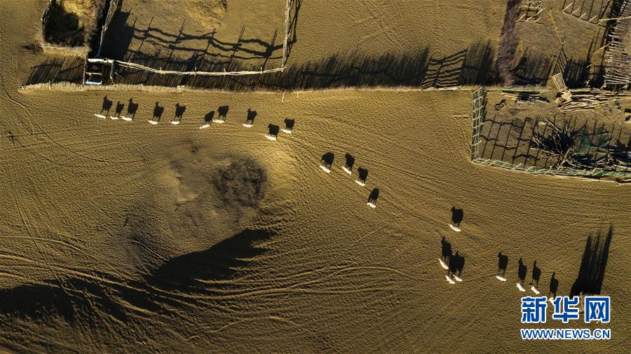 這是在克里雅河沿岸綠洲達(dá)里雅布依拍攝的羊群(11月13日無(wú)人機(jī)拍攝)。 新華社記者 沈伯韓 攝