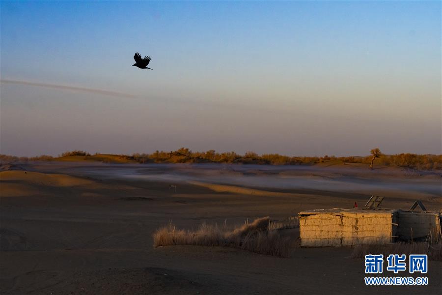 這是在克里雅河沿岸綠洲達里雅布依拍攝的被朝陽照亮的傳統(tǒng)民居(11月13日攝)。 新華社記者 沈伯韓 攝