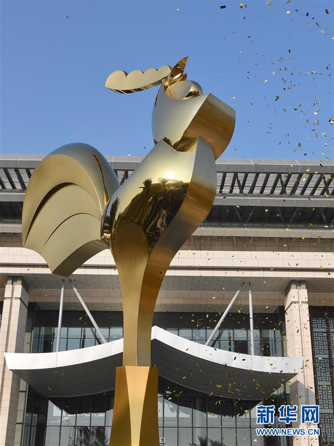 11月19日,金雞雕塑在第28屆金雞百花電影節(jié)金雞雕塑揭幕儀式上亮相。新華社記者姜克紅攝