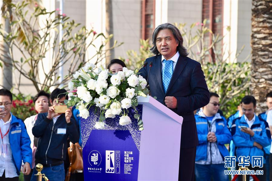 11月19日,金雞雕塑設計者、中國美術(shù)館館長吳為山在第28屆金雞百花電影節(jié)金雞雕塑揭幕儀式上致辭。新華社記者姜克紅攝