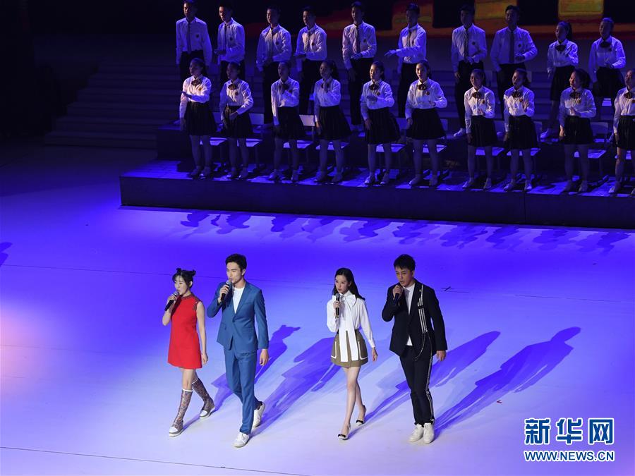 11月19日,演員代表在第28屆中國金雞百花電影節(jié)開幕式上演唱歌曲《星辰大?!?。新華社記者姜克紅攝