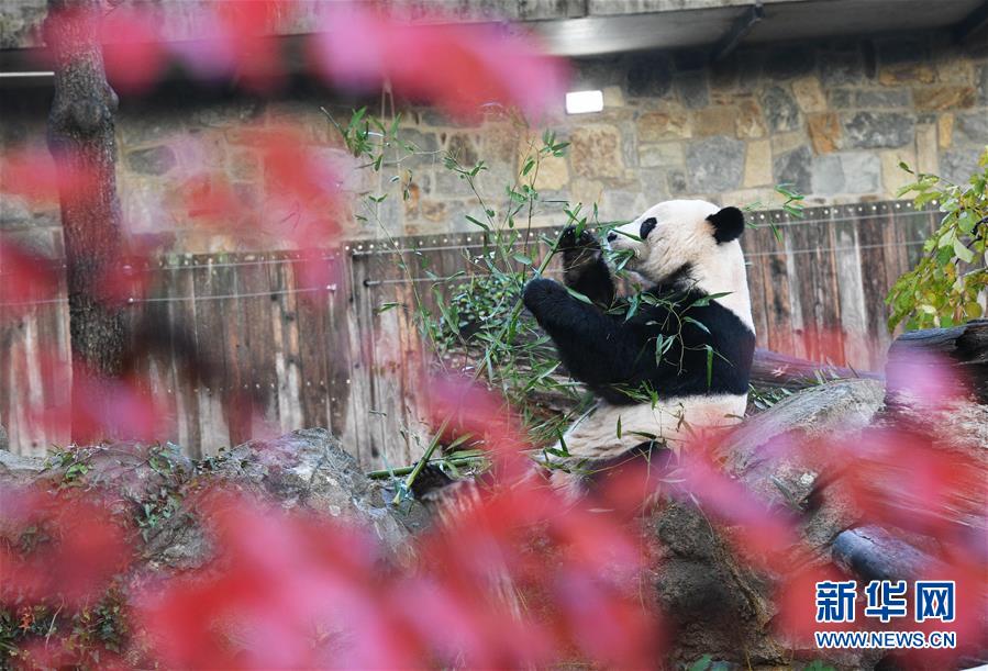 11月19日,在美國(guó)華盛頓的美國(guó)國(guó)家動(dòng)物園,大熊貓“貝貝”享用啟程回國(guó)前的最后一頓“早餐”。 新華社記者 劉杰 攝