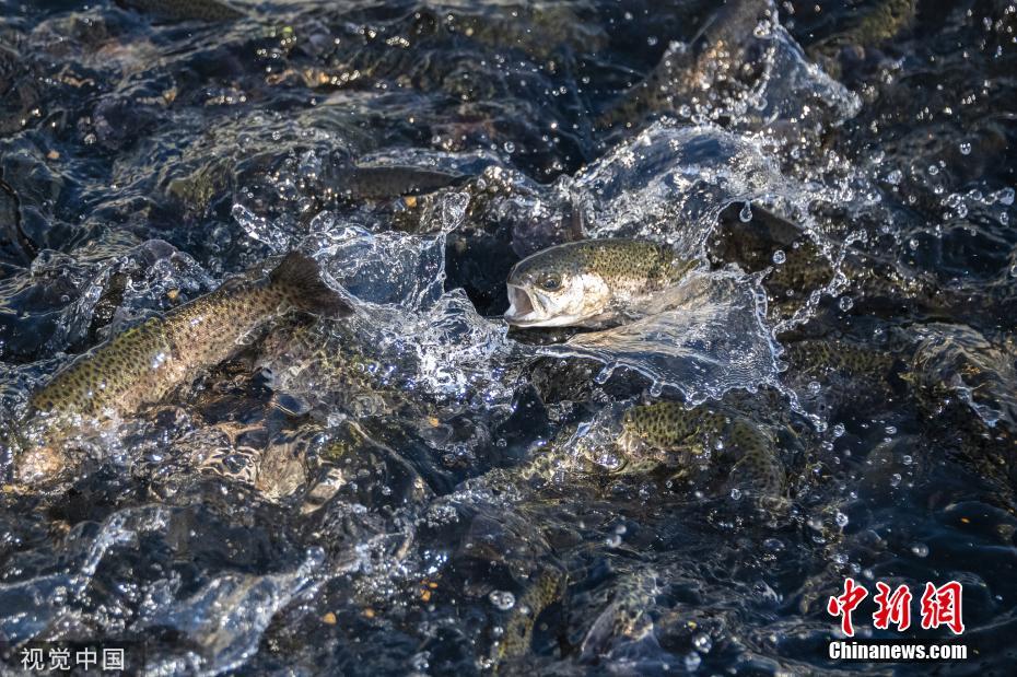 當(dāng)?shù)貢r間2019年11月17日,美國加州薩克拉門托,實拍洄游產(chǎn)卵的鮭魚。圖片來源:視覺中國