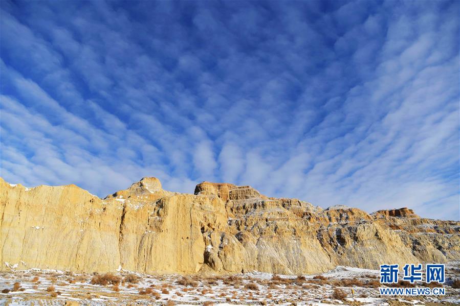 11月26日拍攝的新疆福??h烏倫古湖海上魔鬼城景區(qū)美景。福??h烏倫古湖海上魔鬼城景區(qū)位于新疆阿勒泰地區(qū)福??h吉力湖東岸,有著獨(dú)特的雅丹地貌和水域景觀,是當(dāng)?shù)刂穆糜蝿俚?。新華社記者沙達(dá)提攝