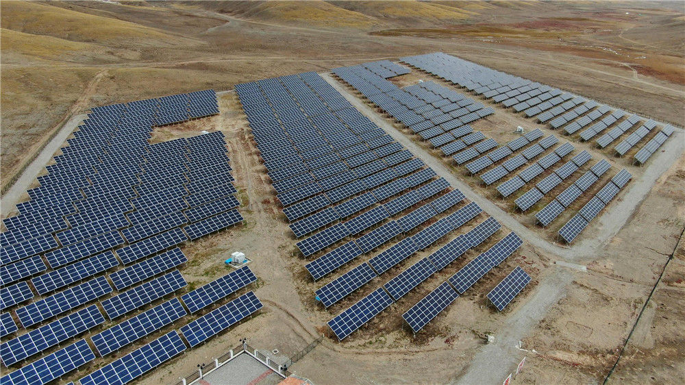 2019年10月10日,位于青海省果洛藏族自治州瑪多縣境內的中國海拔最高村級光伏扶貧電站。