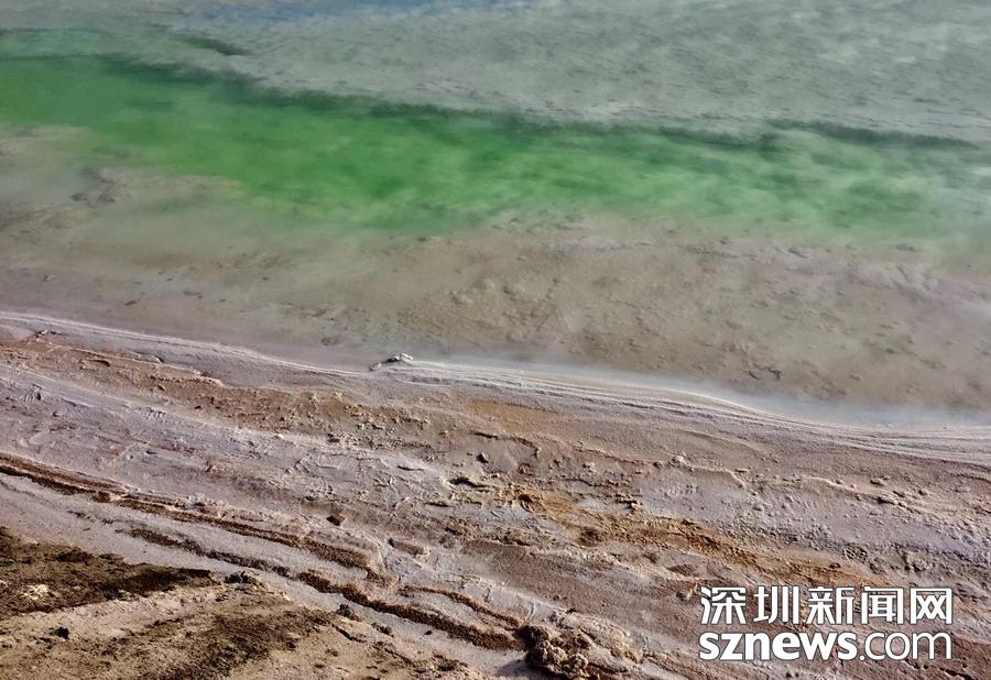 翡翠湖西距花土溝鎮(zhèn)28公里,就在315國(guó)道旁邊,它鉀肥鹵水的顏色純美剔透,如鑲嵌在戈壁的璞玉,形成了“水映丹霞、花土朝陽(yáng)、昆侖橙霞”等魔幻奇觀。李仁奇攝