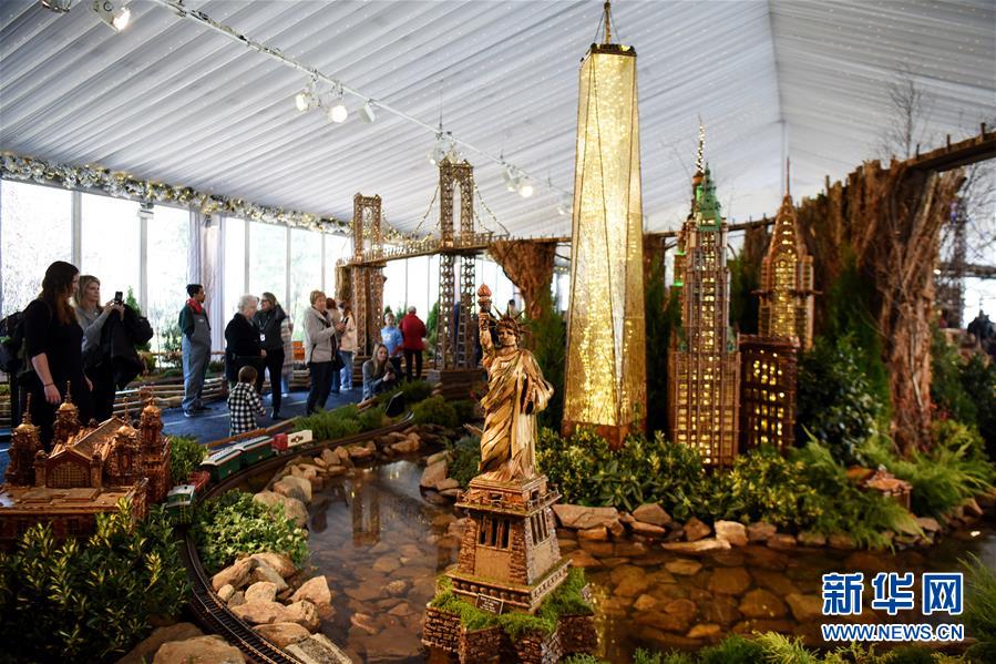 紐約植物園節(jié)日小火車展是紐約冬季傳統(tǒng)活動之一,迄今已舉辦28屆。今年的小火車展從2019年11月23日持續(xù)至2020年1月26日。各式火車模型穿行在用樺樹皮、橡果、肉桂條等天然材料制成的175個紐約經(jīng)典地標(biāo)微縮模型中,為游客帶來歡樂的節(jié)日氣氛。