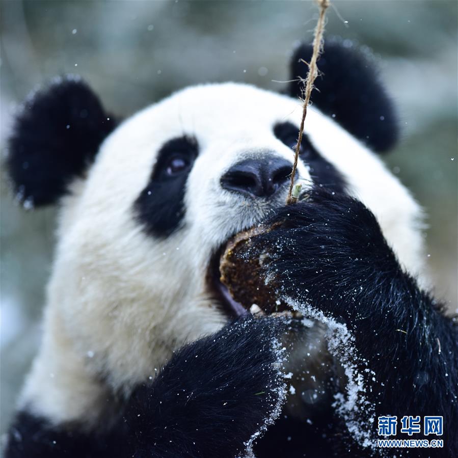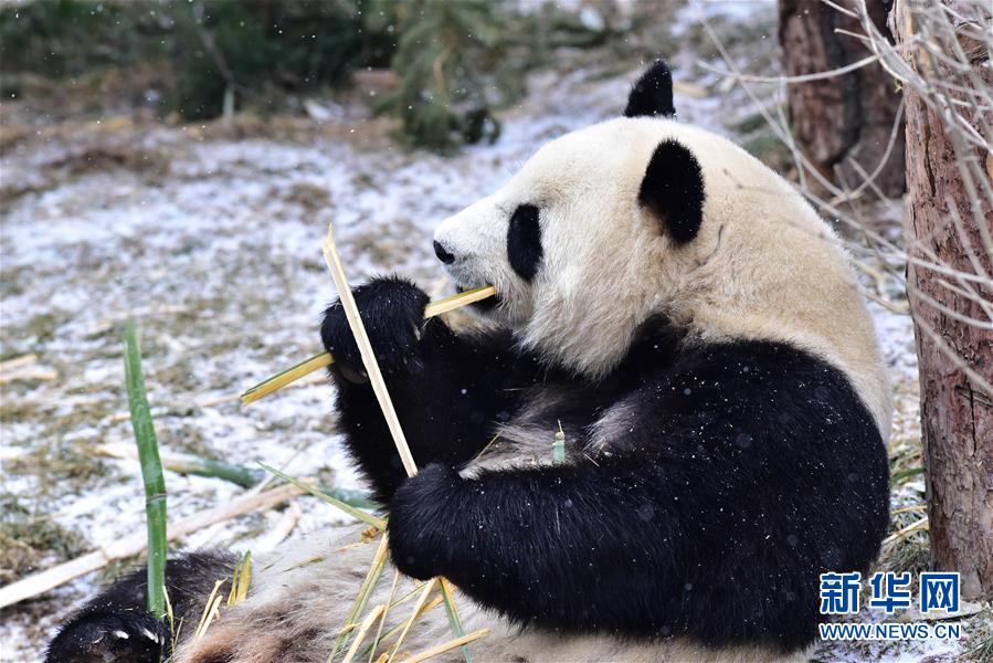 11月29日,在西寧熊貓館內(nèi),兩只大熊貓在吃竹子。 當日,青海省西寧市迎來降雪,西寧熊貓館四只“萌寵”大熊貓在雪天里享受著吃竹子的樂趣。據(jù)了解,大熊貓生活的適宜溫度在26攝氏度至零下5攝氏度之間,冬季氣溫低于零下5攝氏度時,場館會啟用保暖設施。 新華社記者 吳剛 攝