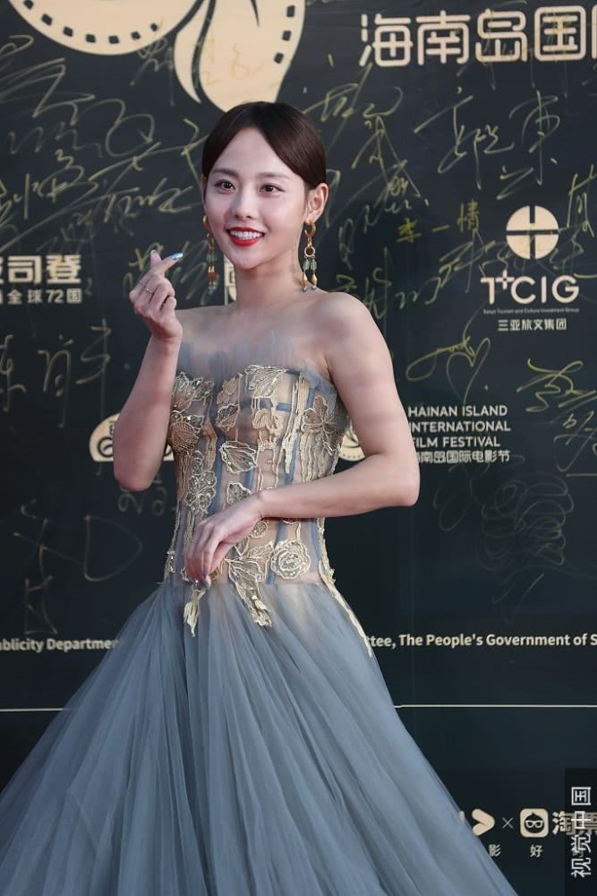 2019年12月1日,三亞,第二屆海南島國際電影節(jié)。何泓姍彎腰為張嘉倪整理裙擺,跟此前劇中傲嬌跋扈的“玫嬪”人設(shè)大不相同。