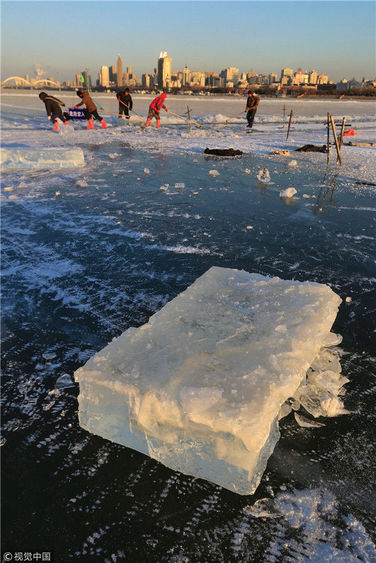 2018年12月08日,黑龍江省哈爾濱市,松花江采冰,今日正式出冰。本次采冰,是為第二十屆哈爾濱冰雪大世界的建造而進(jìn)行。