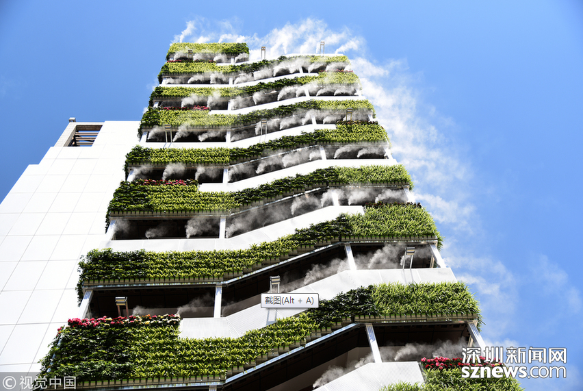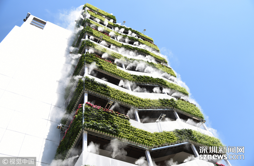 “仙氣飄飄”、“西安天氣有多熱,房子都冒煙了”,這是一段抖音小視頻里網(wǎng)友的評論留言。視頻中一棟10層高的樓外側(cè)樓梯處掛滿了綠植,同時(shí)綠植上方還有噴霧。藍(lán)藍(lán)的天空當(dāng)做背景,引來不少人上前拍照,配著背景音樂的確讓人感覺清涼無比。