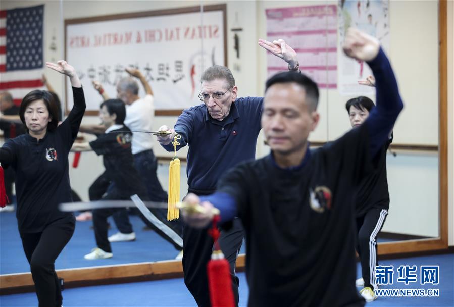 陳思坦在位于美國紐約長島的思坦太極武術(shù)中心指導(dǎo)學(xué)員練習(xí)太極劍(11月20日攝)。11月的紐約已進(jìn)入初冬,位于美國紐約長島的思坦太極武術(shù)中心依然一片紅火景象,學(xué)員們從5歲的孩童到80多歲的老人,操練著太極拳、太極劍、長拳等武術(shù)招式。這里的主人陳思坦、林旭夫婦,也從早忙到晚,精心指導(dǎo)每一位學(xué)員的一招一式。6歲習(xí)武,22歲成為中國全國冠軍,26歲獲得首個世界冠軍……直到30歲退役,陳思坦在運(yùn)動員生涯中曾獲得過32次國內(nèi)外各類武術(shù)大賽冠軍。36歲那年,懷著以太極拳和中國武術(shù)為媒介向世界推廣中國文化的夢想,陳思坦到美國紐約尋找新的舞臺。經(jīng)過十多年的艱苦打拼,陳思坦夫婦目前在紐約長島、法拉盛和曼哈頓都開設(shè)了長期的課程,思坦太極注冊在編的各個年齡段的學(xué)員近千人,有些“高徒”現(xiàn)在自己也開班授課,將太極推向更多地方。陳思坦夫婦現(xiàn)在思考更多的是如何將太極和武術(shù)推廣給更多的美國人,并讓他們理解其中蘊(yùn)含的平衡、和諧的中國文化理念。他們創(chuàng)辦了紐約太極健身氣功活動日,在各類學(xué)校和社區(qū)開設(shè)太極或者武術(shù)課程,并利用美國的亞太裔文化月和多元文化節(jié)舉行武術(shù)和太極表演和體驗課程,讓更多美國人親眼看到、親身體會中國武術(shù)的魅力。從2011年起,他們還參與創(chuàng)辦了紐約太極大賽,如今已舉行九屆,吸引了美國、加拿大和中國國內(nèi)的隊伍參賽,影響力逐漸擴(kuò)大。新華社記者王迎攝