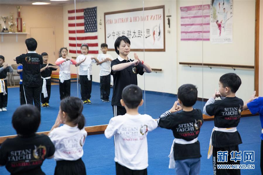 陳思坦的夫人林旭在位于美國紐約長島的思坦太極武術(shù)中心指導(dǎo)小學(xué)員練習(xí)武術(shù)(11月20日攝)。11月的紐約已進(jìn)入初冬,位于美國紐約長島的思坦太極武術(shù)中心依然一片紅火景象,學(xué)員們從5歲的孩童到80多歲的老人,操練著太極拳、太極劍、長拳等武術(shù)招式。這里的主人陳思坦、林旭夫婦,也從早忙到晚,精心指導(dǎo)每一位學(xué)員的一招一式。6歲習(xí)武,22歲成為中國全國冠軍,26歲獲得首個世界冠軍……直到30歲退役,陳思坦在運(yùn)動員生涯中曾獲得過32次國內(nèi)外各類武術(shù)大賽冠軍。36歲那年,懷著以太極拳和中國武術(shù)為媒介向世界推廣中國文化的夢想,陳思坦到美國紐約尋找新的舞臺。經(jīng)過十多年的艱苦打拼,陳思坦夫婦目前在紐約長島、法拉盛和曼哈頓都開設(shè)了長期的課程,思坦太極注冊在編的各個年齡段的學(xué)員近千人,有些“高徒”現(xiàn)在自己也開班授課,將太極推向更多地方。陳思坦夫婦現(xiàn)在思考更多的是如何將太極和武術(shù)推廣給更多的美國人,并讓他們理解其中蘊(yùn)含的平衡、和諧的中國文化理念。他們創(chuàng)辦了紐約太極健身氣功活動日,在各類學(xué)校和社區(qū)開設(shè)太極或者武術(shù)課程,并利用美國的亞太裔文化月和多元文化節(jié)舉行武術(shù)和太極表演和體驗課程,讓更多美國人親眼看到、親身體會中國武術(shù)的魅力。從2011年起,他們還參與創(chuàng)辦了紐約太極大賽,如今已舉行九屆,吸引了美國、加拿大和中國國內(nèi)的隊伍參賽,影響力逐漸擴(kuò)大。新華社記者王迎攝