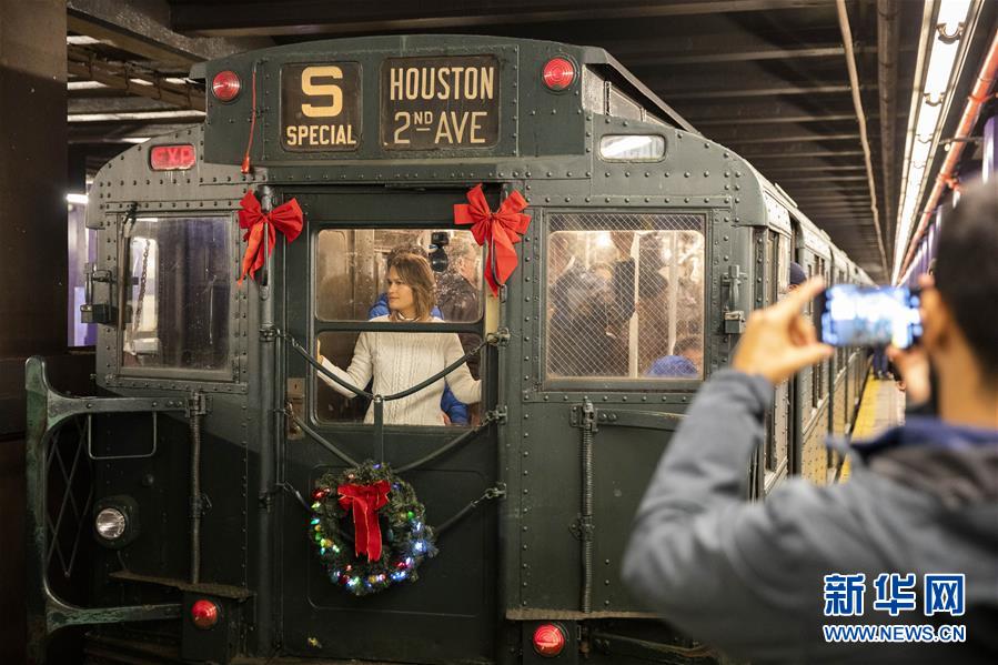 12月8日,在美國紐約,人們搭乘“懷舊專列”。每年感恩節(jié)到新年之間的星期日,紐約地鐵都會用1932年至1977年間使用的老式列車在運(yùn)營的線路上開行特別的“懷舊專列”,人們穿戴舊時服飾專程前來搭乘,體驗時光回溯的奇妙旅程。新華社記者王迎攝