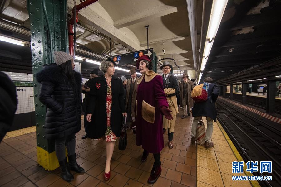 12月8日,在美國紐約,人們搭乘“懷舊專列”后準(zhǔn)備離開。每年感恩節(jié)到新年之間的星期日,紐約地鐵都會用1932年至1977年間使用的老式列車在運(yùn)營的線路上開行特別的“懷舊專列”,人們穿戴舊時服飾專程前來搭乘,體驗時光回溯的奇妙旅程。新華社記者王迎攝