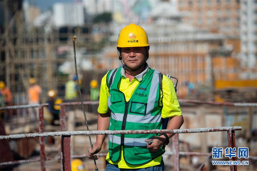 11月22日,澳門(mén)工地工人何錦在工地上,他已經(jīng)工作了25年,主要負(fù)責(zé)處理工地事項(xiàng)。 新華社記者 張金加 攝