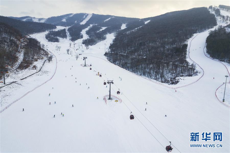 空中俯瞰吉林市萬科松花湖度假區(qū)滑雪場(12月13日無人機拍攝)。新華社記者 張豪夫 攝