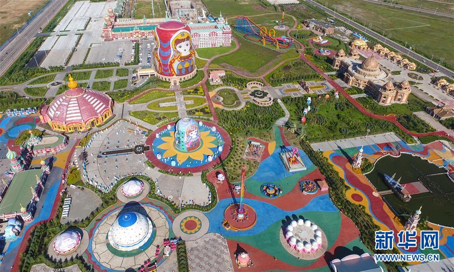 8月29日無人機拍攝的滿洲里市套娃廣場景區(qū)。滿洲里市位于呼倫貝爾大草原腹地。新華社記者彭源攝