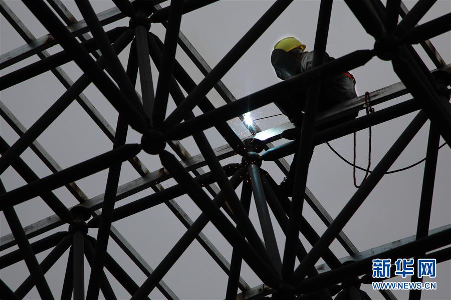 12月17日,中鐵八局建設(shè)者們?cè)诟拿茶F路口岸施工(無(wú)人機(jī)拍攝)。 新華社記者 劉續(xù) 攝