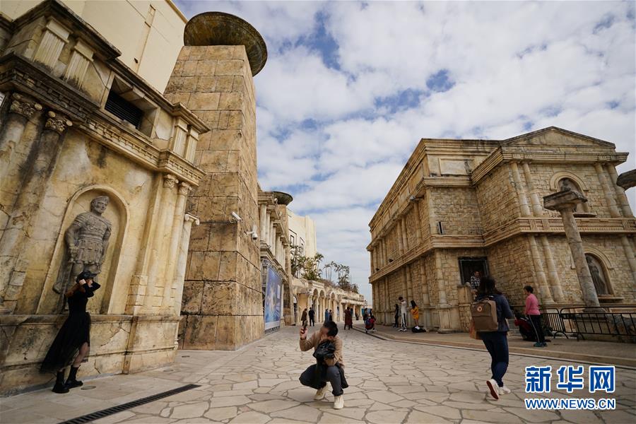 12月17日,游客在澳門漁人碼頭拍照留影。新華社記者王申攝