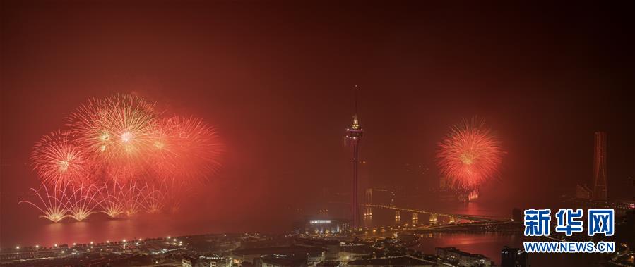 12月22日,煙花在澳門上空綻放。當(dāng)晚,澳門與珠海首次聯(lián)合舉行煙花匯演,慶祝澳門回歸20周年。新華社記者呂小煒攝
