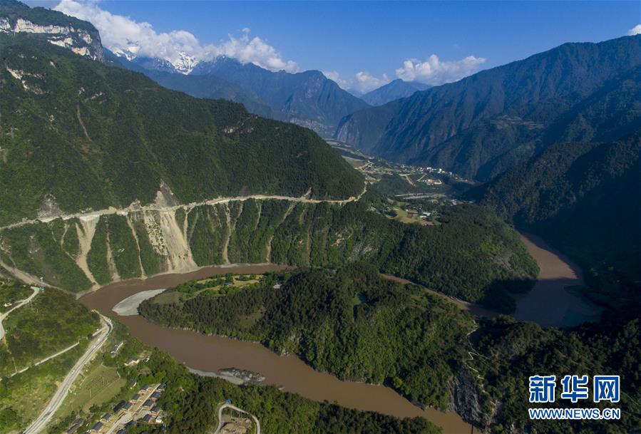 這是4月27日在云南省貢山獨龍族怒族自治縣丙中洛鎮(zhèn)拍攝的“怒江第一灣”(無人機拍攝)。新華社記者江文耀攝