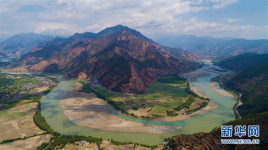 這是無人機拍攝的“長江第一灣”(3月17日攝)。“長江第一灣”位于云南省麗江市玉龍納西族自治縣石鼓鎮(zhèn),萬里長江從青藏高原奔騰而下,與瀾滄江、怒江一起在橫斷山脈的高山深谷中穿行形成并流的壯麗景觀。金沙江在麗江石鼓鎮(zhèn)突然以急轉彎轉向東北,形成一個宛若“V”字形的大轉彎,得名“長江第一灣”。春日里,“長江第一灣”江水青碧,美景迷人。新華社記者胡超攝