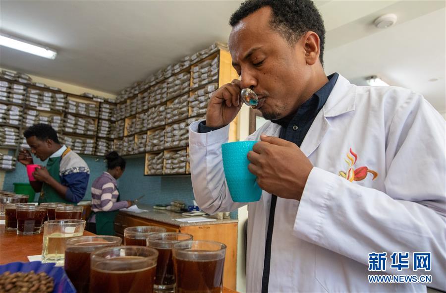 2019年10月23日,在位于埃塞俄比亞首都亞的斯亞貝巴郊外的卡辰什咖啡加工廠內(nèi),卡辰什咖啡質(zhì)量和市場(chǎng)總監(jiān)阿斯納克·卡薩在杯測(cè)室參與咖啡的杯測(cè)。卡辰什咖啡是埃塞俄比亞最大的咖啡生產(chǎn)商和出口商之一。卡薩表示,中國(guó)市場(chǎng)潛力巨大,埃塞俄比亞咖啡在中國(guó)市場(chǎng)的占有率不斷增長(zhǎng),進(jìn)博會(huì)對(duì)埃塞俄比亞咖啡出口商來(lái)說(shuō)是一個(gè)很好的機(jī)會(huì)。 新華社記者 張宇 攝