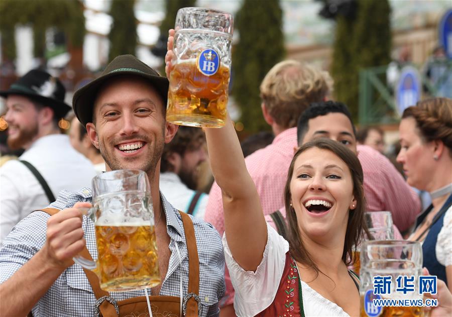 2019年9月21日,人們?cè)诘?86屆德國(guó)慕尼黑啤酒節(jié)上享用啤酒。 新華社記者 逯陽(yáng) 攝