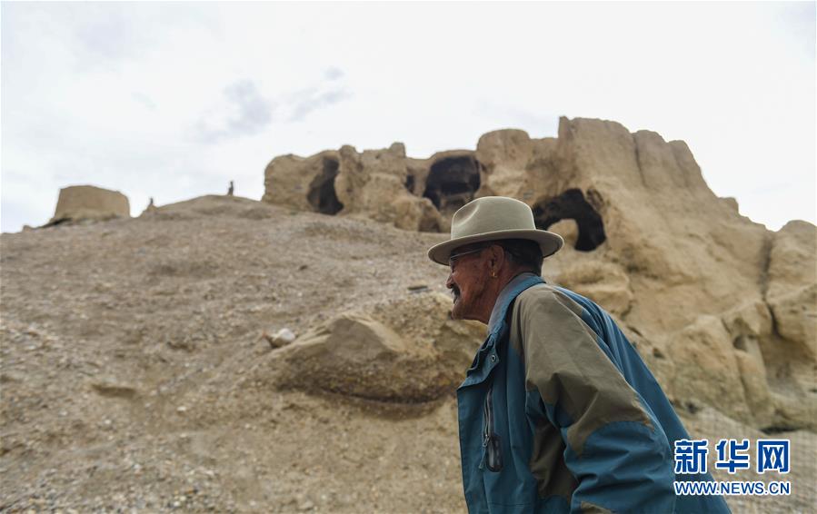 76歲的達(dá)瓦次仁走過(guò)古格遺址前的洞窟,這里曾是他的家(7月30日攝)。新華社記者晉美多吉攝