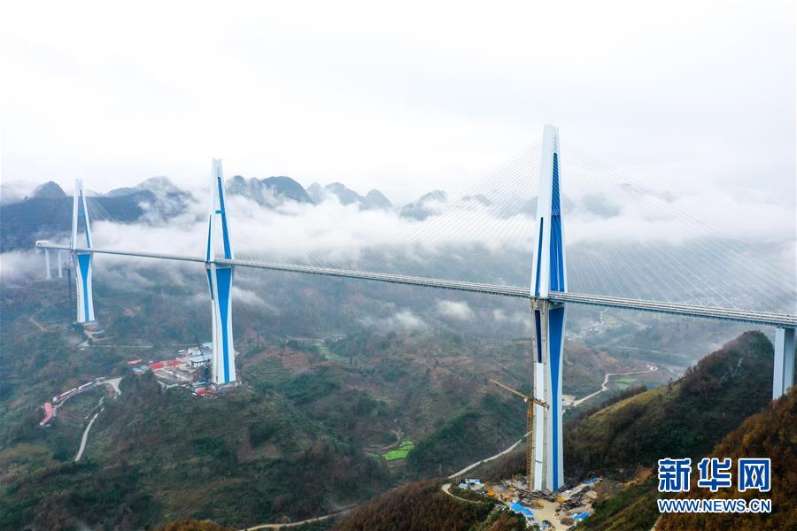 12月30日,云霧繚繞中的貴州平塘特大橋(無(wú)人機(jī)照片)。新華社記者劉續(xù)攝