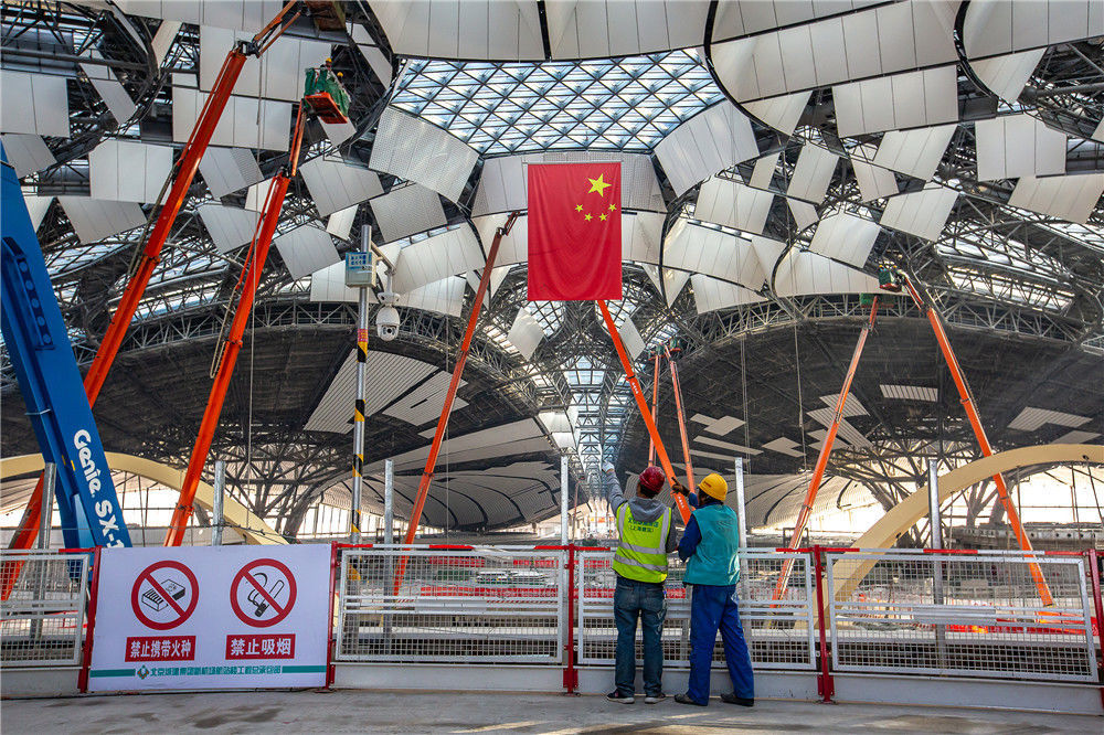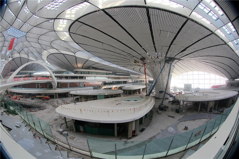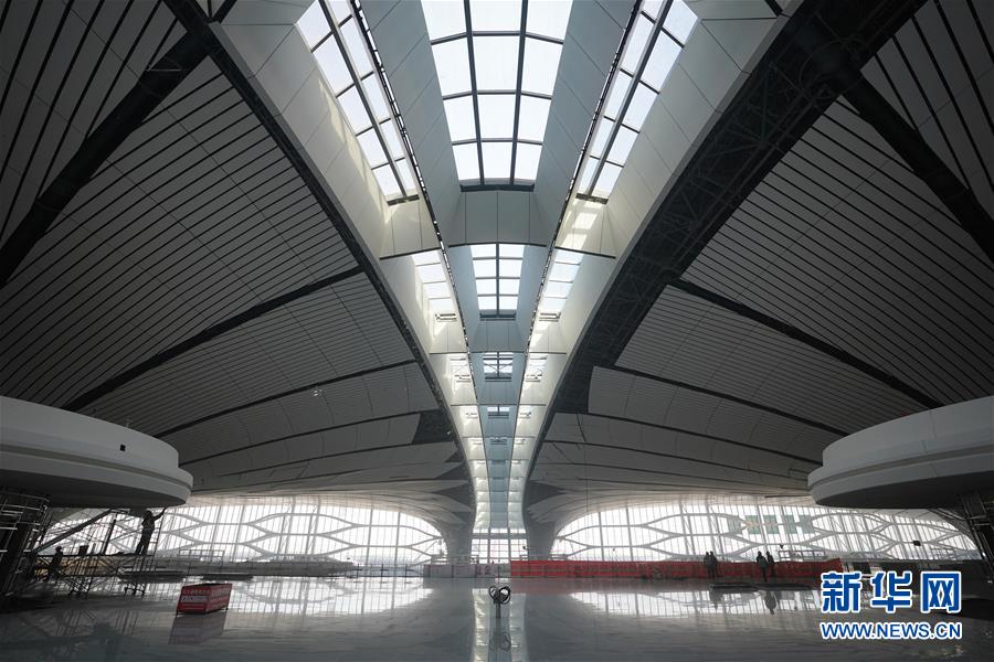 2019年4月26日,北京大興國(guó)際機(jī)場(chǎng)將于9月底正式通航。工程建設(shè)進(jìn)入總攻階段,目前,航站樓內(nèi)部裝飾進(jìn)行收尾的工作。武輝/千龍圖像/視覺(jué)中國(guó)