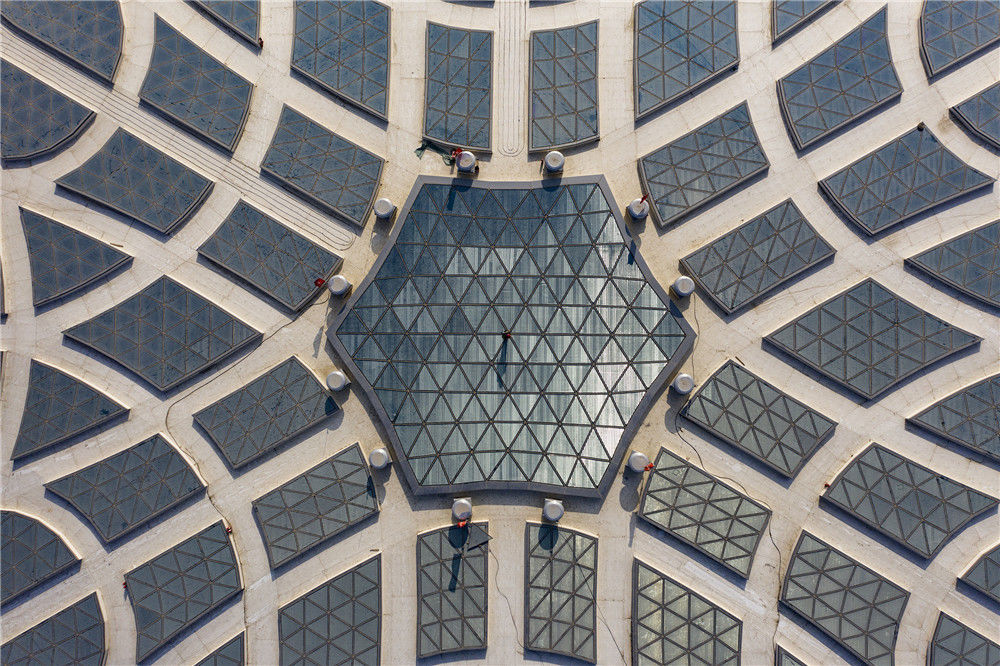 這是6月14日無(wú)人機(jī)拍攝的北京大興國(guó)際機(jī)場(chǎng)航站樓。