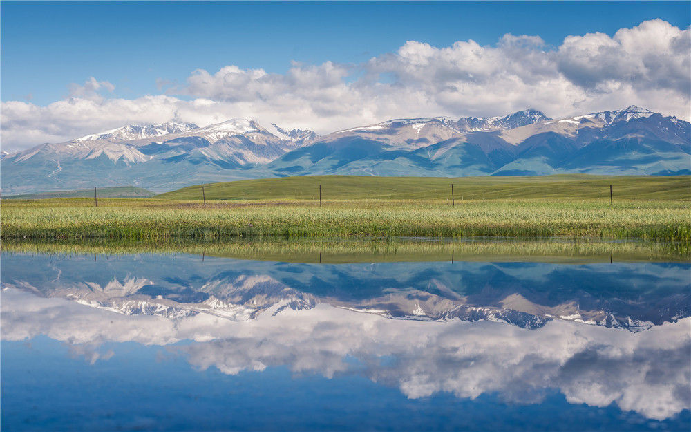 2019年7月11日,新疆巴音郭楞獨(dú)庫(kù)公路邊的天山倒影。黃光浩/視覺中國(guó)