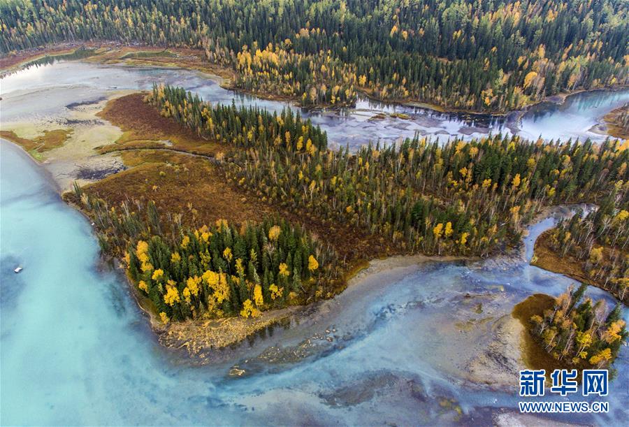 9月24日無(wú)人機(jī)拍攝的喀納斯景區(qū)風(fēng)光。新華社記者王菲攝