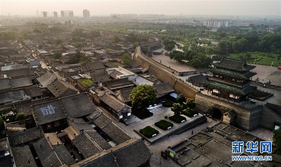 這是7月20日無人機拍攝的晨曦中的平遙古城。
