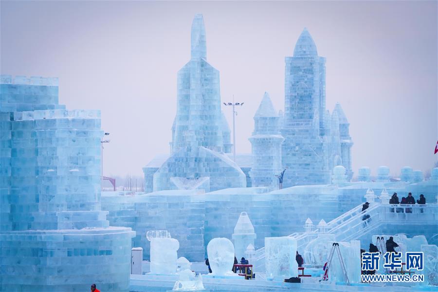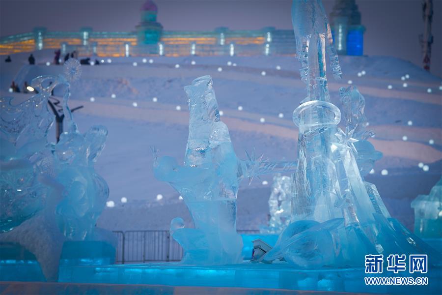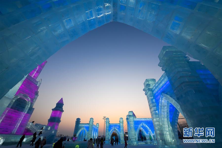 這是哈爾濱冰雪大世界園區(qū)中的景觀(1月5日攝)。每到冬季,天氣寒冷的冰城哈爾濱陸續(xù)迎來(lái)各類(lèi)冰雕雪雕賽事。從2019年12月7日起,采冰工人們?nèi)找共杀\(yùn)冰、冰景雪雕藝術(shù)家精心雕琢,這些“冰雪造夢(mèng)者”們?cè)趪?yán)寒天氣中辛苦付出,讓一座“冰雪之城”在松花江畔拔地而起,向來(lái)自世界各地的游客展現(xiàn)浪漫絢麗的冰雪奇觀。新華社記者王松攝