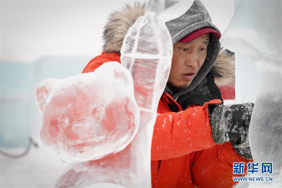 1月6日,參賽者在創(chuàng)作冰雕。新華社記者王松攝