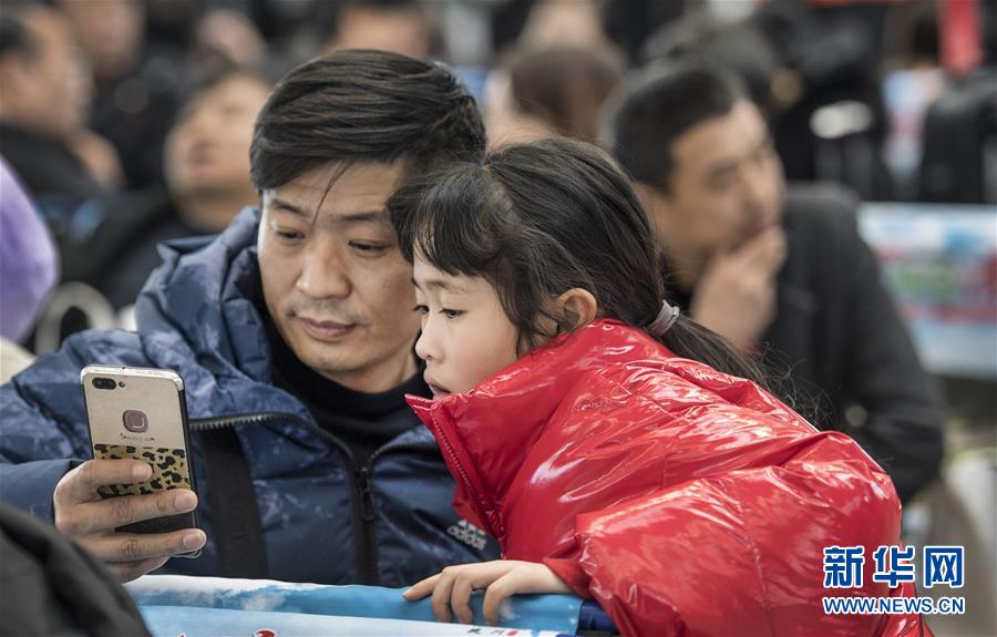 1月14日,一對父女在西安北站候車大廳用手機查看信息。路再遠、再艱辛,也擋不住回家的腳步。在西安北站的每一個角落,處處充滿溫情和歸鄉(xiāng)的盼望。連日來,西安北站日均發(fā)送旅客12.1萬人次,一列列春運的列車,載著中國人的鄉(xiāng)愁,駛向遠方。新華社記者陶明攝