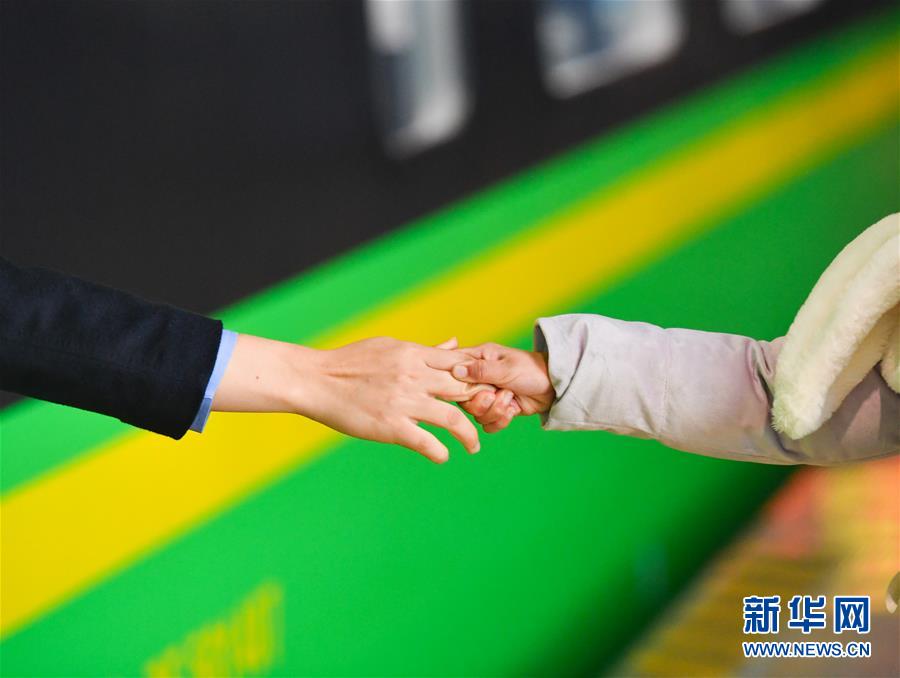1月3日,朱梓芮在站臺(tái)上將母親手腕上稍有模糊的“手表”描繪清晰。新華社記者 胡晨歡 攝