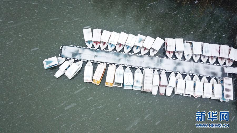 這是1月15日拍攝的合肥市包公園雪景(無人機(jī)照片)。 當(dāng)日,安徽省合肥市迎來降雪天氣。雪中的合肥市包公園景色別致。 新華社記者 張端 攝
