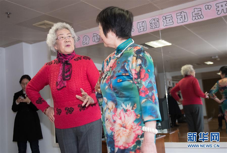 1月17日,張丹俠(右)幫助手臂曾經(jīng)骨折的王育華穿外衣。新華社記者 翁忻旸 攝