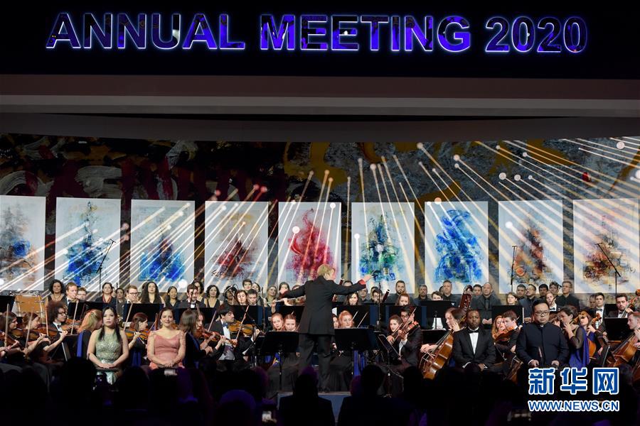 1月20日,在瑞士達(dá)沃斯,藝術(shù)家在世界經(jīng)濟(jì)論壇2020年年會(huì)開幕音樂會(huì)上表演。 新華社記者 郭晨 攝