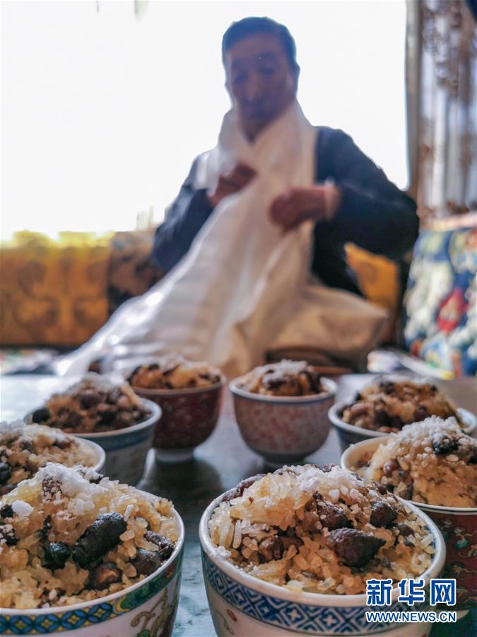 擺放在西藏群眾家中的新年供品(2月24日攝)。  新華社記者 普布扎西 攝