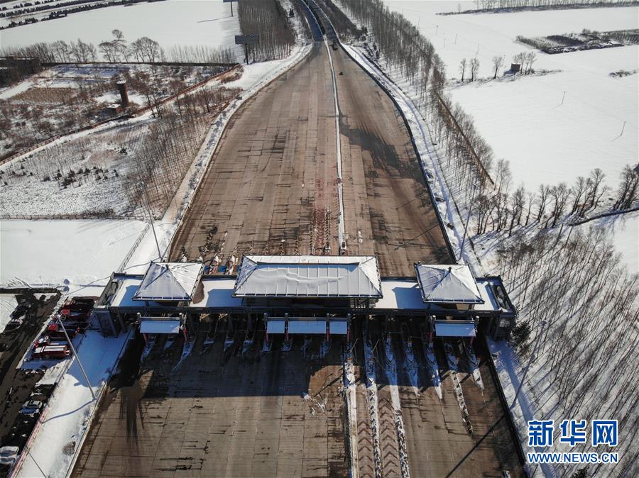 2月24日,哈牡高速公路哈爾濱收費(fèi)站重新開放(無人機(jī)照片)。  新華社記者 王松 攝