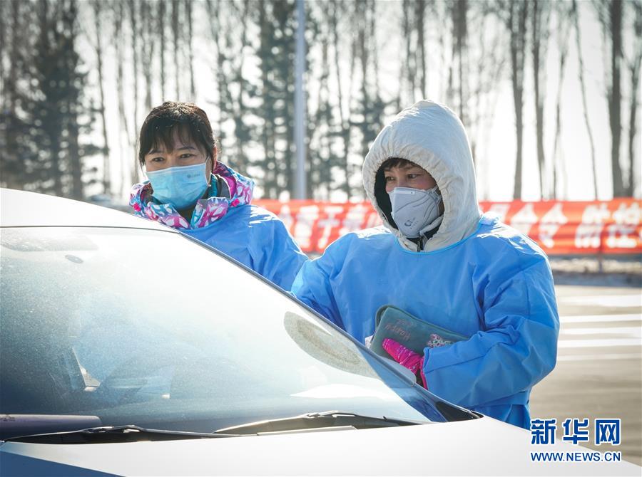 2月24日,工作人員在哈同高速公路哈爾濱收費站為車輛人員登記。  新華社記者 王松 攝